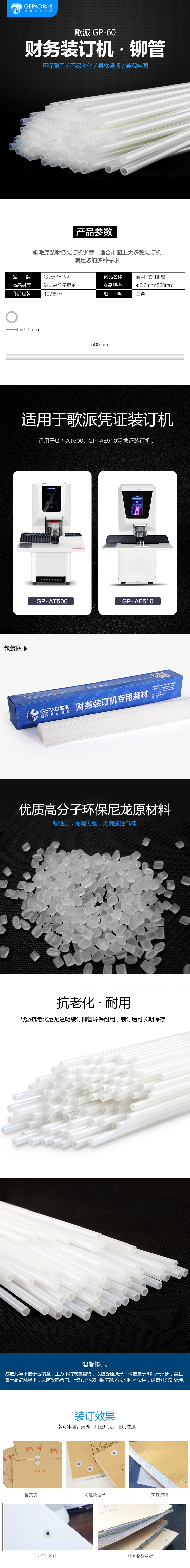 歌派(GEPAD) 6.0mm 装订管 6.0*500mm 100根/盒(单位:盒)