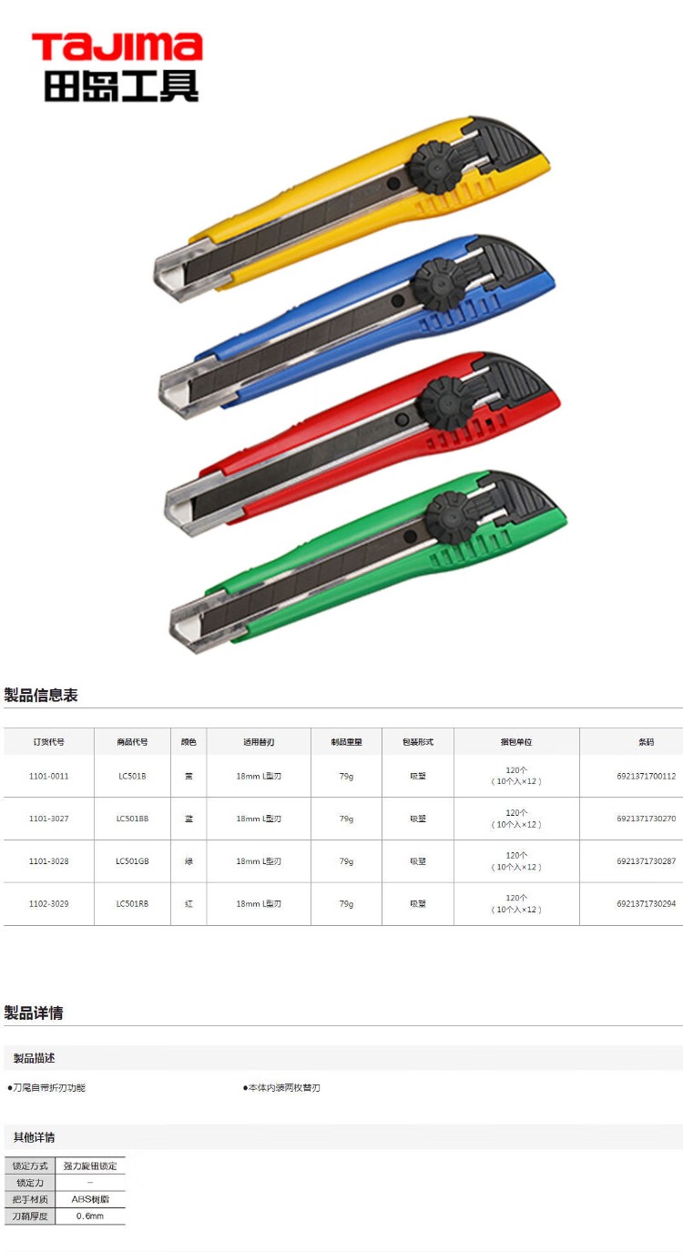 田岛(TaJIma) 1101-3028 LC501GB 美工刀 18mm 绿色(单位:把)