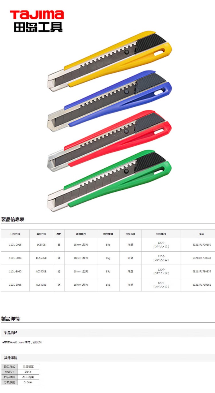 田岛(TaJIma) 1101-3035 LC550RB 美工刀 18mm 红色(单位:把)