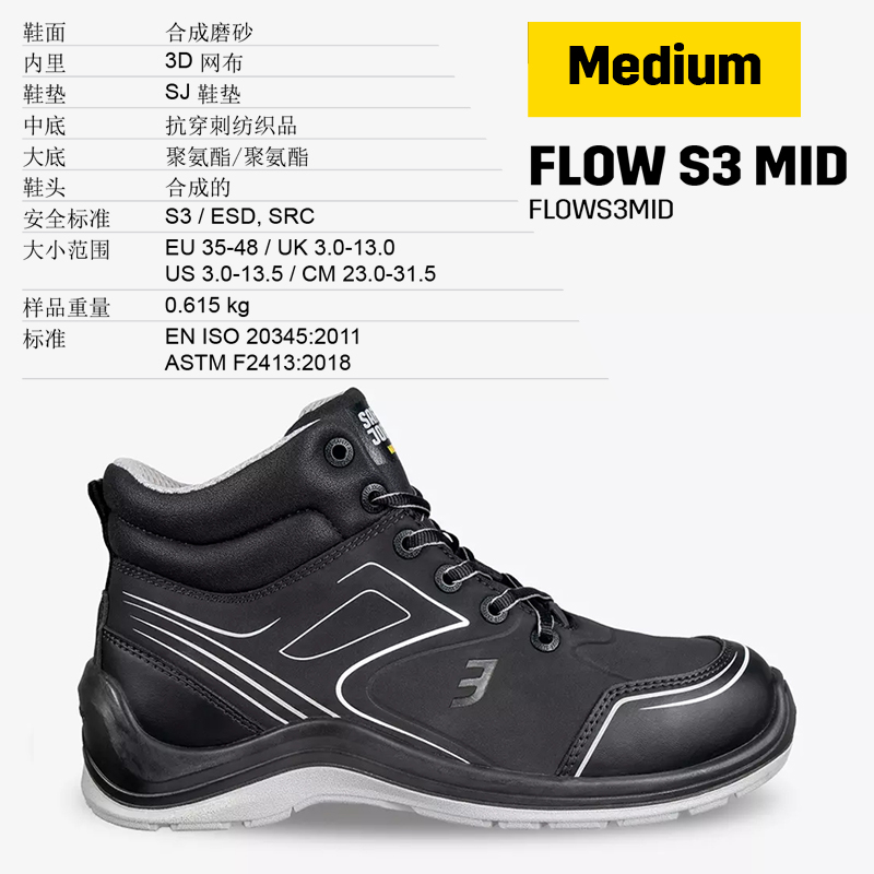 | 商品名称 | FLOW S3 MID 防砸防穿刺中帮防水安全鞋 42码 |