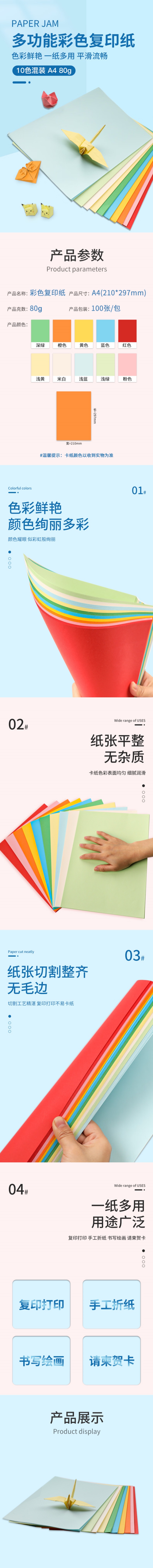 得印(befon) A4 80g 彩色打印纸 100张/包 10色混装(单位:包)