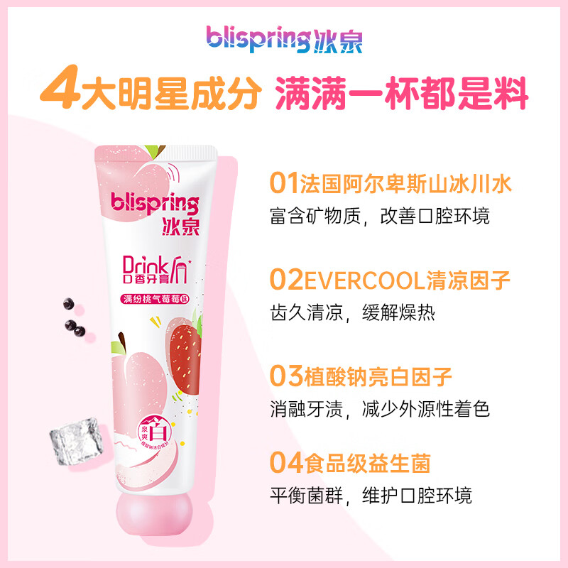 冰泉(blispring) 满纷桃气莓莓味 奶茶香牙膏 120g 新老包装随机发货(单位:支)