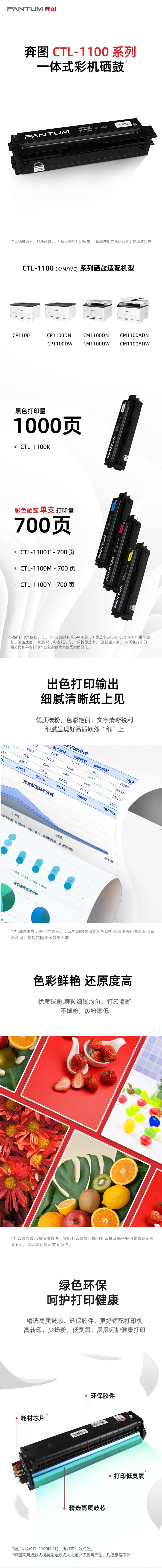 奔图(PANTUM) CTL-1100M 粉盒 700页 适用机型CP1100/CP1100DN/CM1100DN/CM1100DW/CM1100ADN/CM1100ADW 品红/洋红(单位:支)