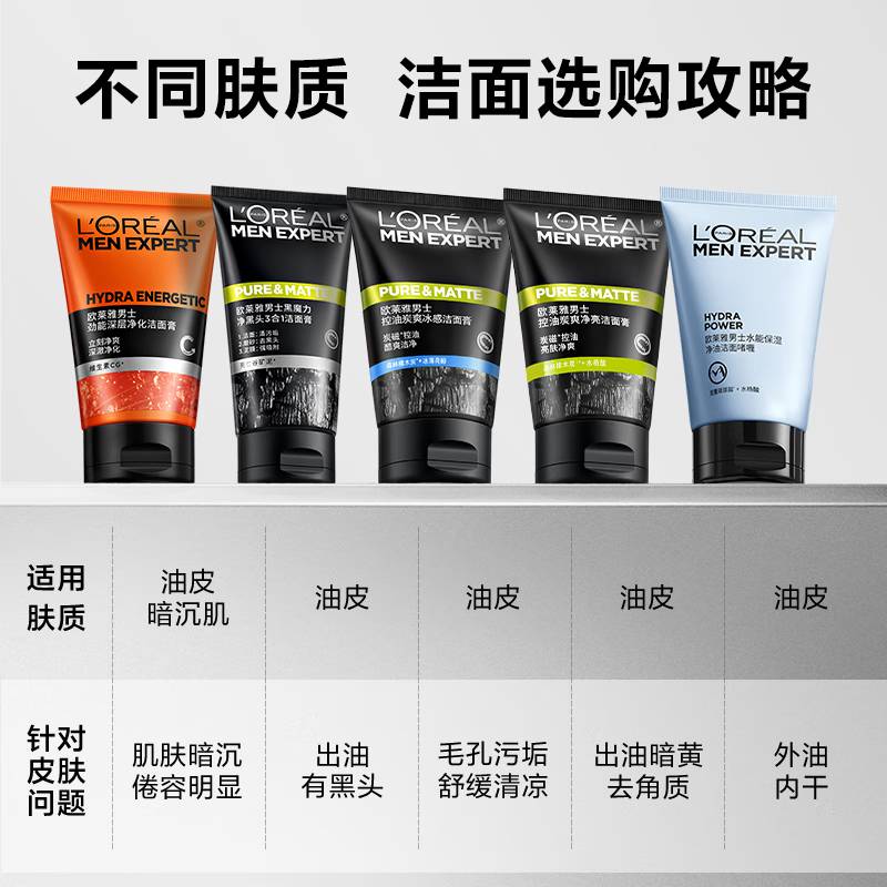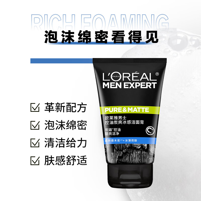 欧莱雅(LOREAL) 男士 控油炭爽冰感洁面膏 100ml(单位:支)