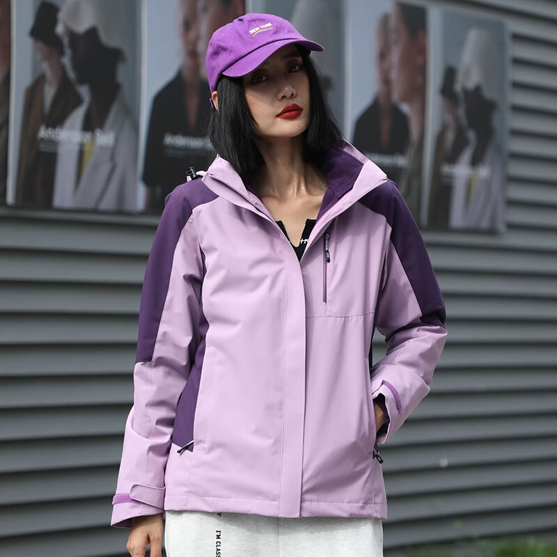 三极 Tri-polar TP8351 男女款三合一可拆卸两件套抓绒冲锋衣 女款 2XL码 紫色(单位:件)