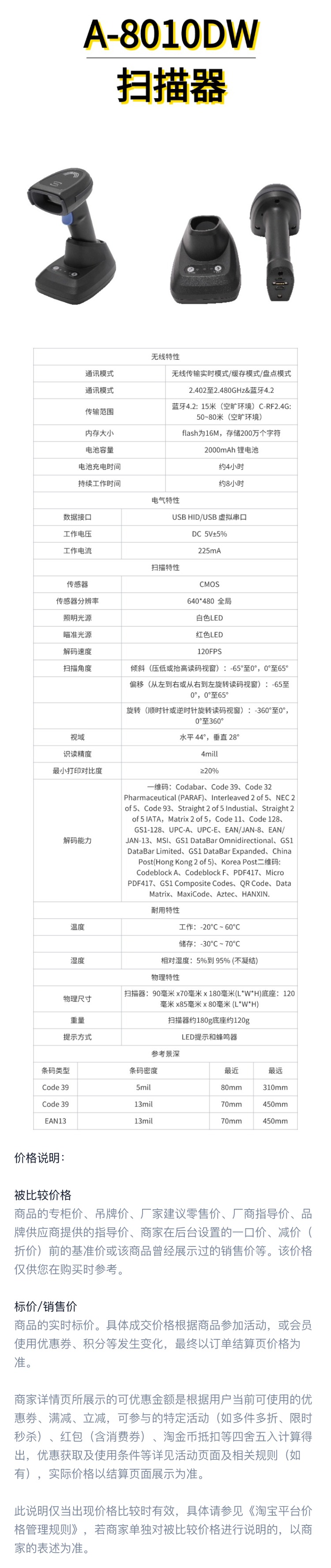 哲林 A-8010DW 无线扫描枪 2000mAh (单位:台)