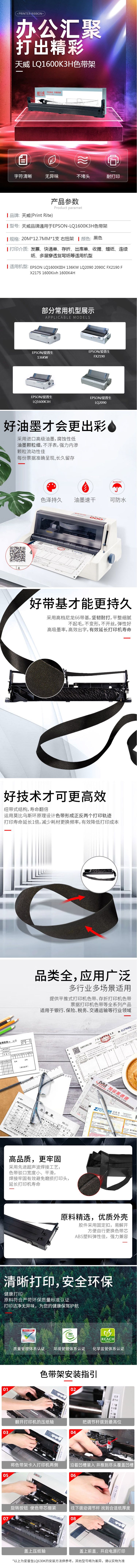 天威(PrintRite) LQ1600KIIIH 色带架 含芯 12.7mm*20m 右扭架 适用爱普生LQ1600K3H 1600K4H 136KW 1600Kivh 2090 FX2190针式打印机色带 黑色(单位:支)