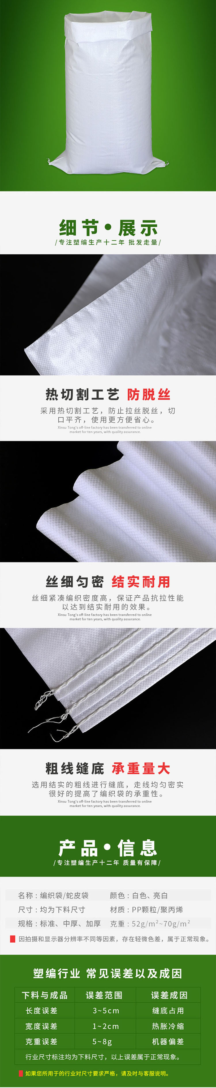 苏识 亮白中厚 pp塑料编织袋 60*102cm 白色(单位:个)