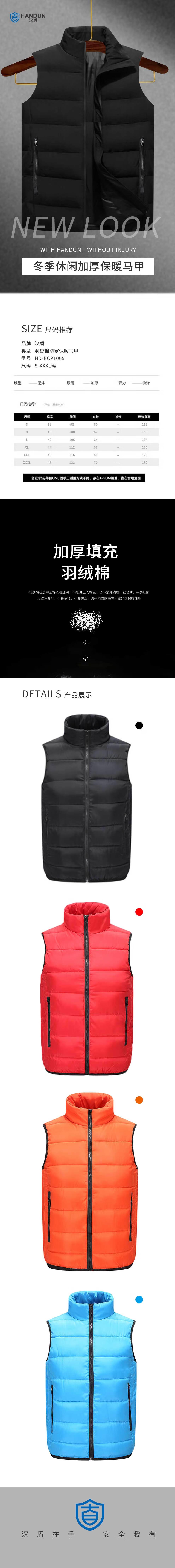 汉盾 HD-BCP1065 羽绒棉防寒保暖马甲 XXXL码 黑色(单位:件)