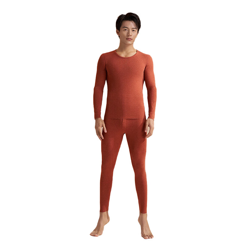 三极户外 TP5428 羊绒蚕丝加厚无缝高弹圆领保暖内衣 男款 M码 橙红色(单位:套)